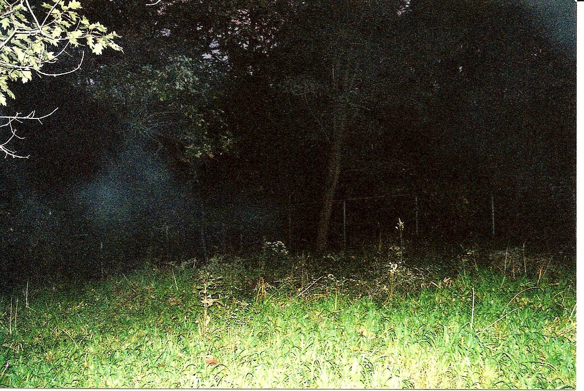 Ever hear of Bachelor’s Grove Cemetery in Midlothian, IL? It ranks as one of the most haunted places in America. People claim to see all sorts of things within this secluded wooded area, including a mysterious house or barn. This photo was taken by a former student of mine. When he showed it to me, I said “There’s the house!” He didn’t realize it was in the photo and said he hadn’t seen anything while he was there. Make of it what you will.